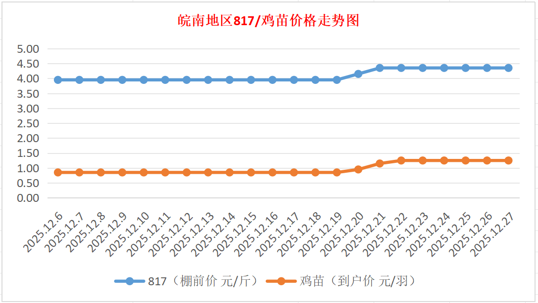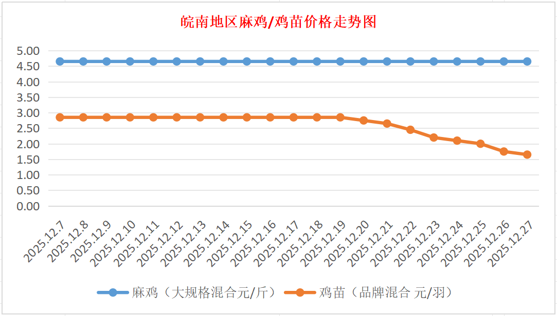 鸡病专业网独家信息:2025年12月27日皖南地区817-麻鸡行情最新走势