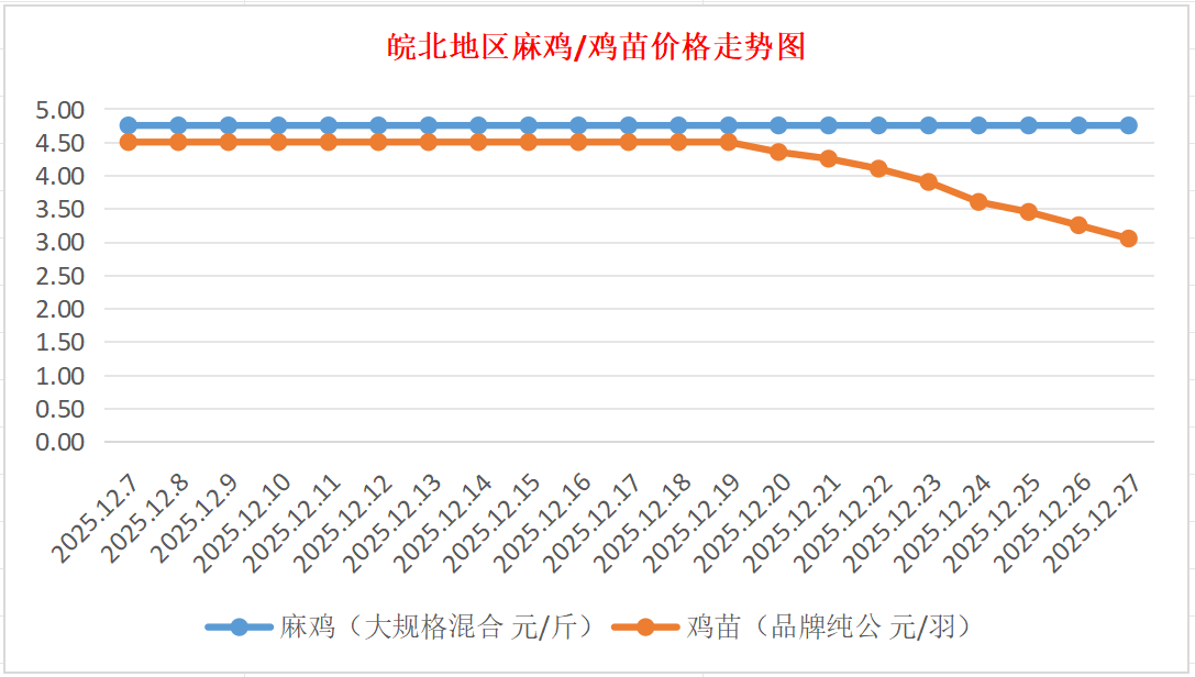 鸡病专业网独家信息:2025年12月27日皖北地区817-麻鸡行情最新走势