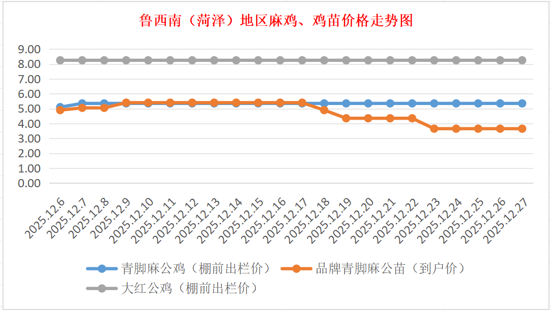 12月27日鲁西南(菏泽)地区麻鸡、鸡苗价格行情