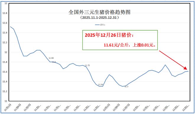 从数据分析,受阶段性生猪购销变化,预计,12月26日,外三元标猪出栏均价在11.61元/公斤,后市关注购销节奏的变化,尤其是,集团猪企出栏节奏的变化!