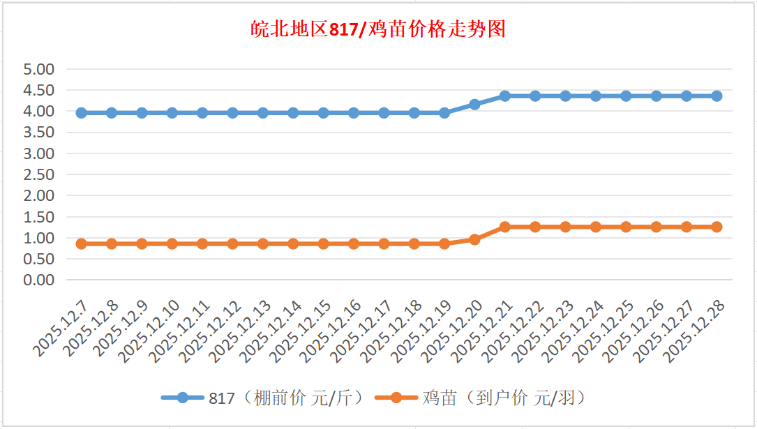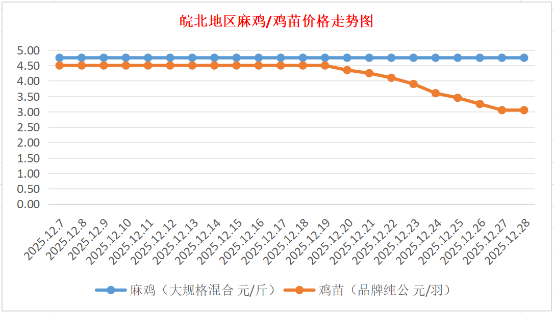 鸡病专业网独家信息:2025年12月28日皖北地区817-麻鸡行情最新走势