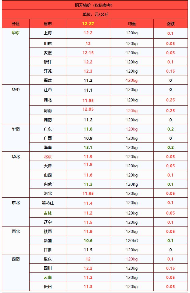 由此来看,在多方因素下,马上元旦,猪价上涨“猛抬头”,短暂价格重心或缓慢回升,市场存在趋势偏强的走势!尤其是,部分机构认为,今年11-12月份,国内养殖主体出栏积极,而12月份二育入场相对有限,市场对于元月供应压力担忧减弱,尤其是,生猪出栏均重下降,中大猪供应压力减轻,部分机构认为,元月份,猪价或以“先弱后强”为主,月末,猪价重心或回升至12.5~13.5元/公斤左右!
