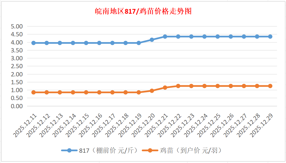 鸡病专业网独家信息:2025年12月29日皖南地区817-麻鸡行情最新走势