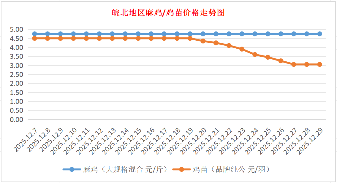 鸡病专业网独家信息:2025年12月29日皖北地区817-麻鸡行情最新走势