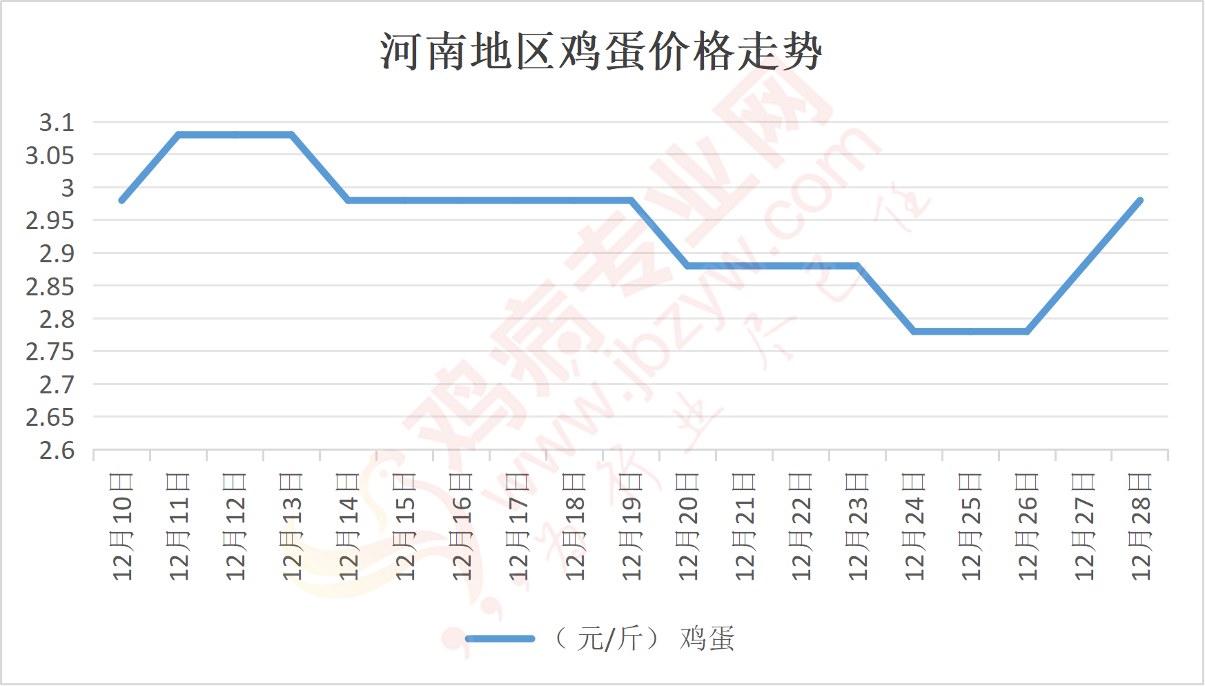 鸡病专业网消息:12月28日,河南郑州鸡蛋3元/斤,涨;新密鸡蛋3元/斤,涨;荥阳鸡蛋3元/斤,涨;中牟鸡蛋3元/斤,涨;周口鸡蛋2.95元/斤,涨;商丘鸡蛋90元/30斤,涨;鹤壁鸡蛋2.95元/斤,涨;汝州鸡蛋2.95元/斤,涨;开封鸡蛋90元/30斤,涨;漯河鸡蛋2.95元/斤,涨;漯河临颍鸡蛋2.95元/斤,涨;许昌鸡蛋3元/斤,涨;南阳鸡蛋2.95元/斤,涨;南阳邓州鸡蛋2.95元/斤,涨;新乡鸡蛋2.95元/斤,涨;安阳鸡蛋2.95元/斤,涨;新郑鸡蛋3元/斤,涨;登封鸡蛋3元/斤,涨;平顶山鸡蛋3元/斤,涨;驻马店鸡蛋3元/斤,涨;三门峡鸡蛋3元/斤,涨;焦作鸡蛋2.95元/斤,涨;信阳鸡蛋2.95元/斤,涨;濮阳鸡蛋2.95元/斤,涨。