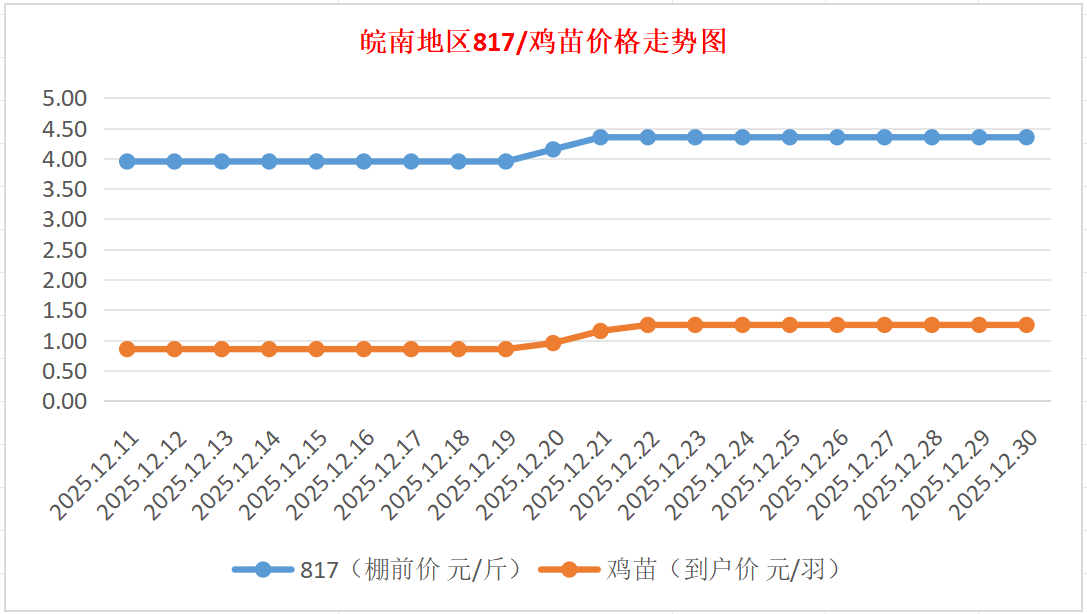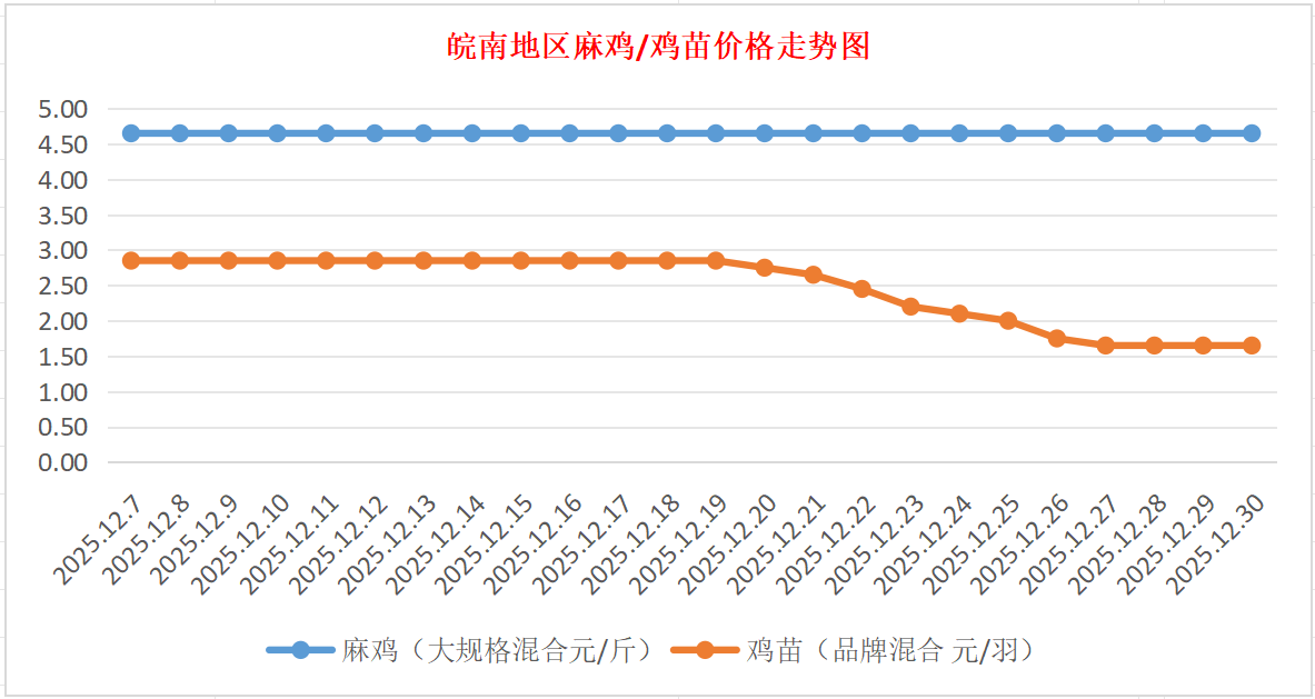 鸡病专业网独家信息:2025年12月30日皖南地区817-麻鸡行情最新走势