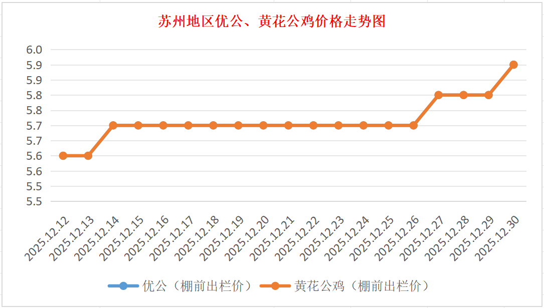 苏州地区优公、黄花公鸡价格走势图(来源:鸡病专业网)