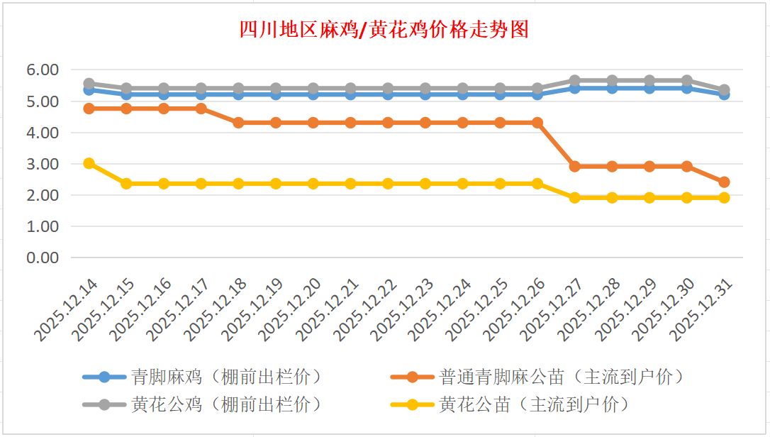 普通青脚麻公苗:价格下滑,主流到户价2.20-2.60元/羽,落。