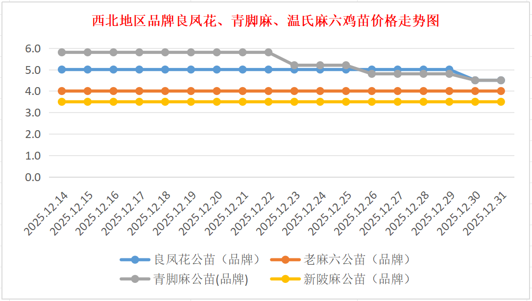 品牌新陂麻:价格稳定,到户价公苗4.50元/羽,稳。