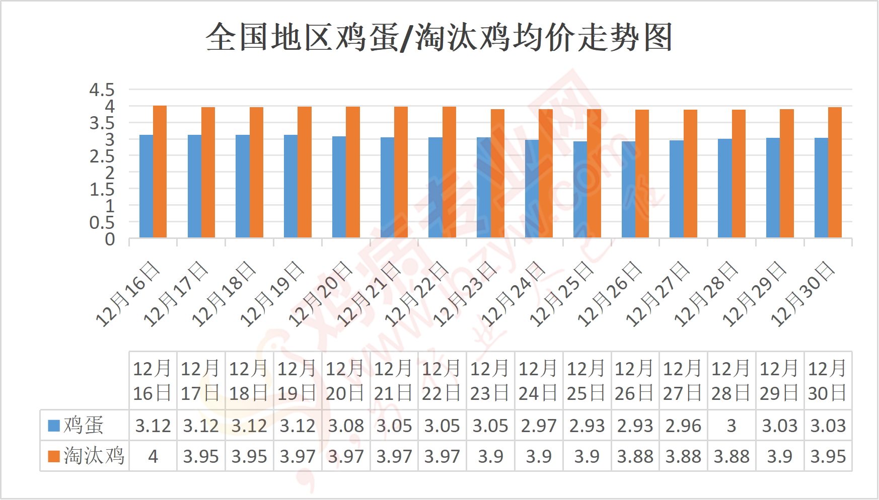 12月30日我国部分地区鸡蛋、淘汰鸡价格汇总