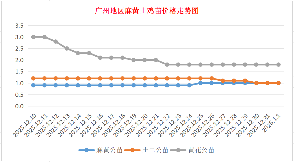 1月1日广州地区麻、黄、土鸡苗价格行情