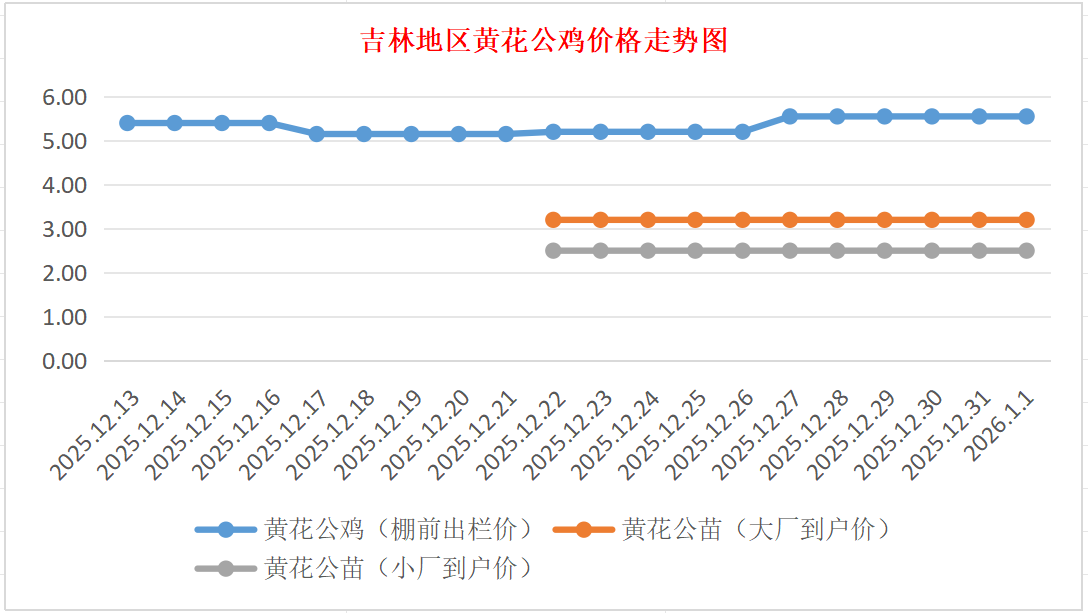 1月1日吉林黄花公鸡、鸡苗价格行情