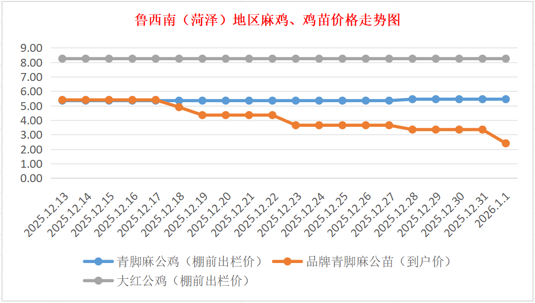 1月1日鲁西南(菏泽)地区麻鸡、鸡苗价格行情