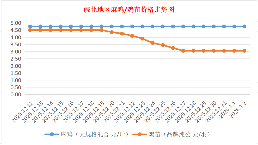 鸡病专业网独家信息:2026年1月2日皖北地区817-麻鸡行情最新走势
