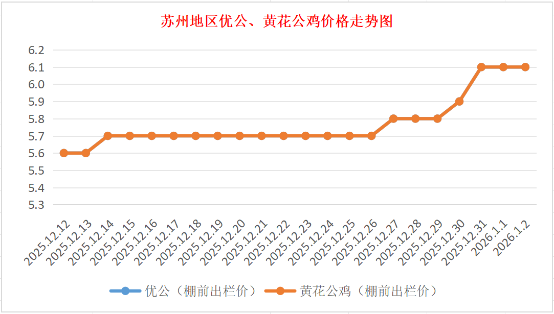 苏州地区优公、黄花公鸡价格走势图(来源:鸡病专业网)