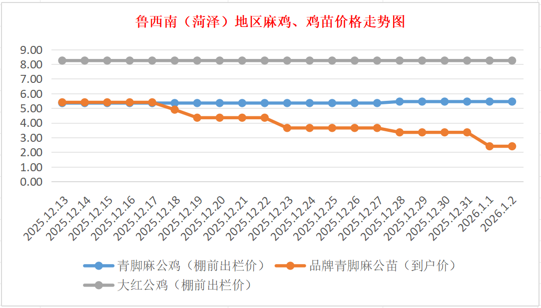 1月2日鲁西南(菏泽)地区麻鸡、鸡苗价格行情