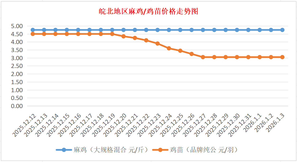 鸡病专业网独家信息:2026年1月3日皖北地区817-麻鸡行情最新走势