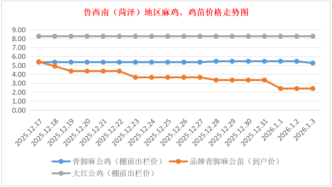 1月3日鲁西南(菏泽)地区麻鸡、鸡苗价格行情