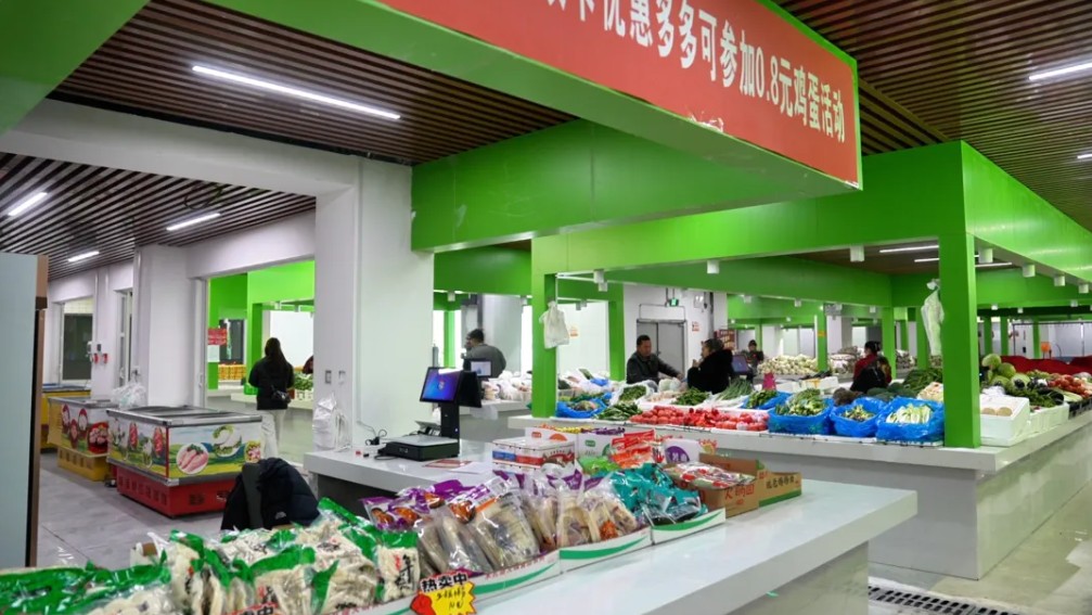 墨玉县首座室内农贸市场,菜鲜生智慧菜市开业运营 (哈尼克孜·木它里甫 摄)