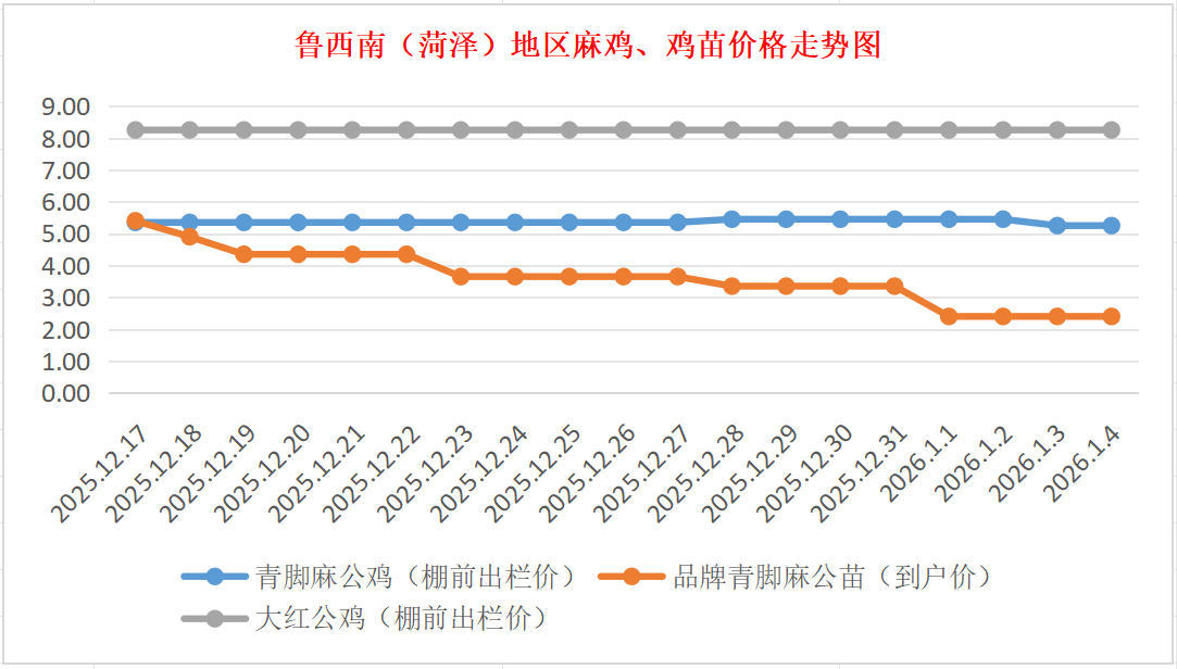 1月4日鲁西南(菏泽)地区麻鸡、鸡苗价格行情