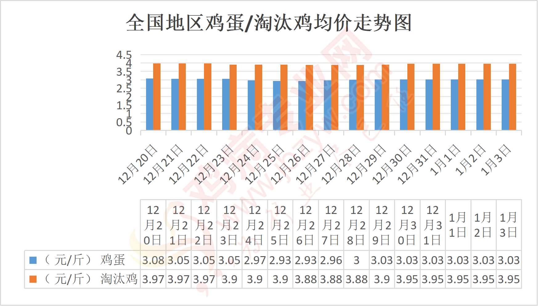 1月3日我国部分地区鸡蛋、淘汰鸡价格汇总