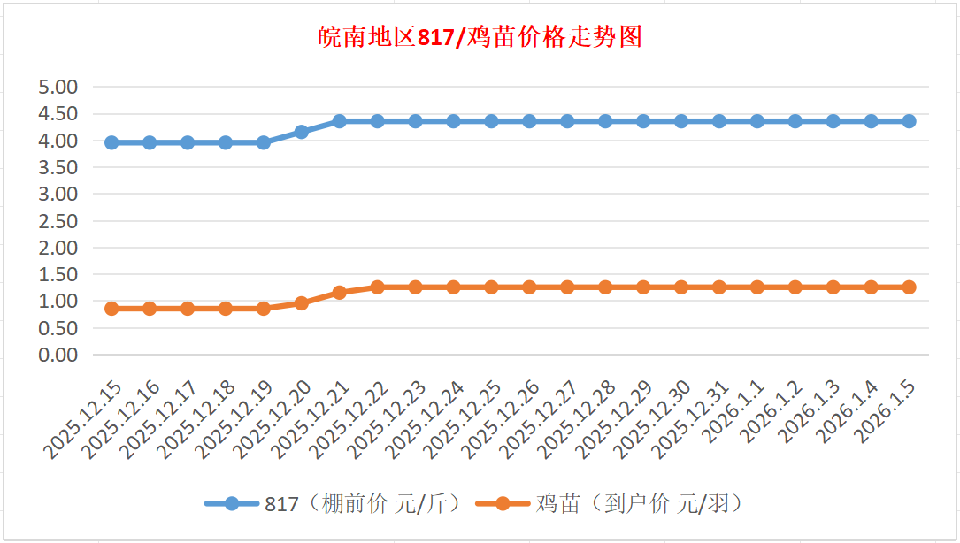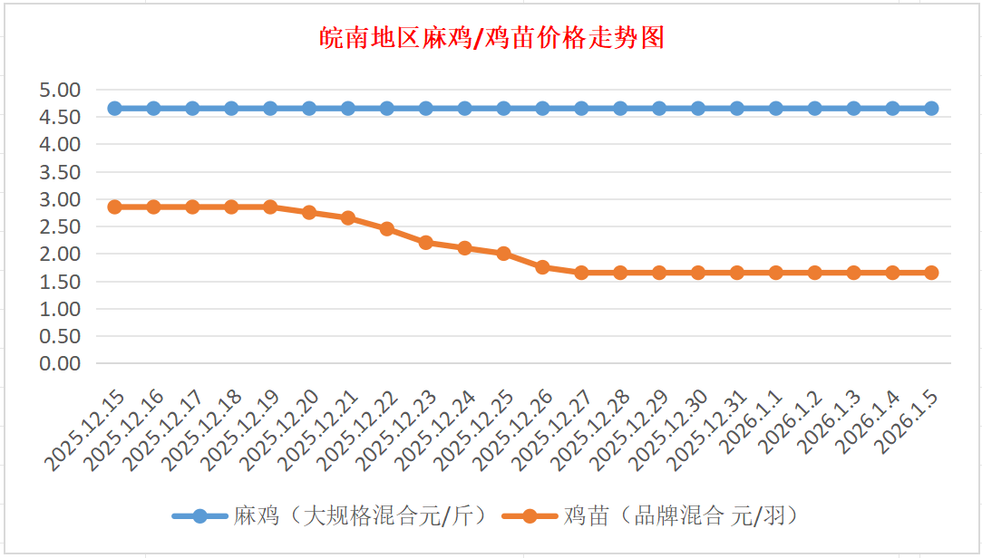 鸡病专业网独家信息:2026年1月5日皖南地区817-麻鸡行情最新走势