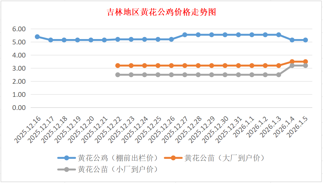 1月5日吉林黄花公鸡、鸡苗价格行情
