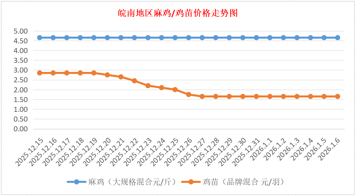 鸡病专业网独家信息:2026年1月6日皖南地区817-麻鸡行情最新走势