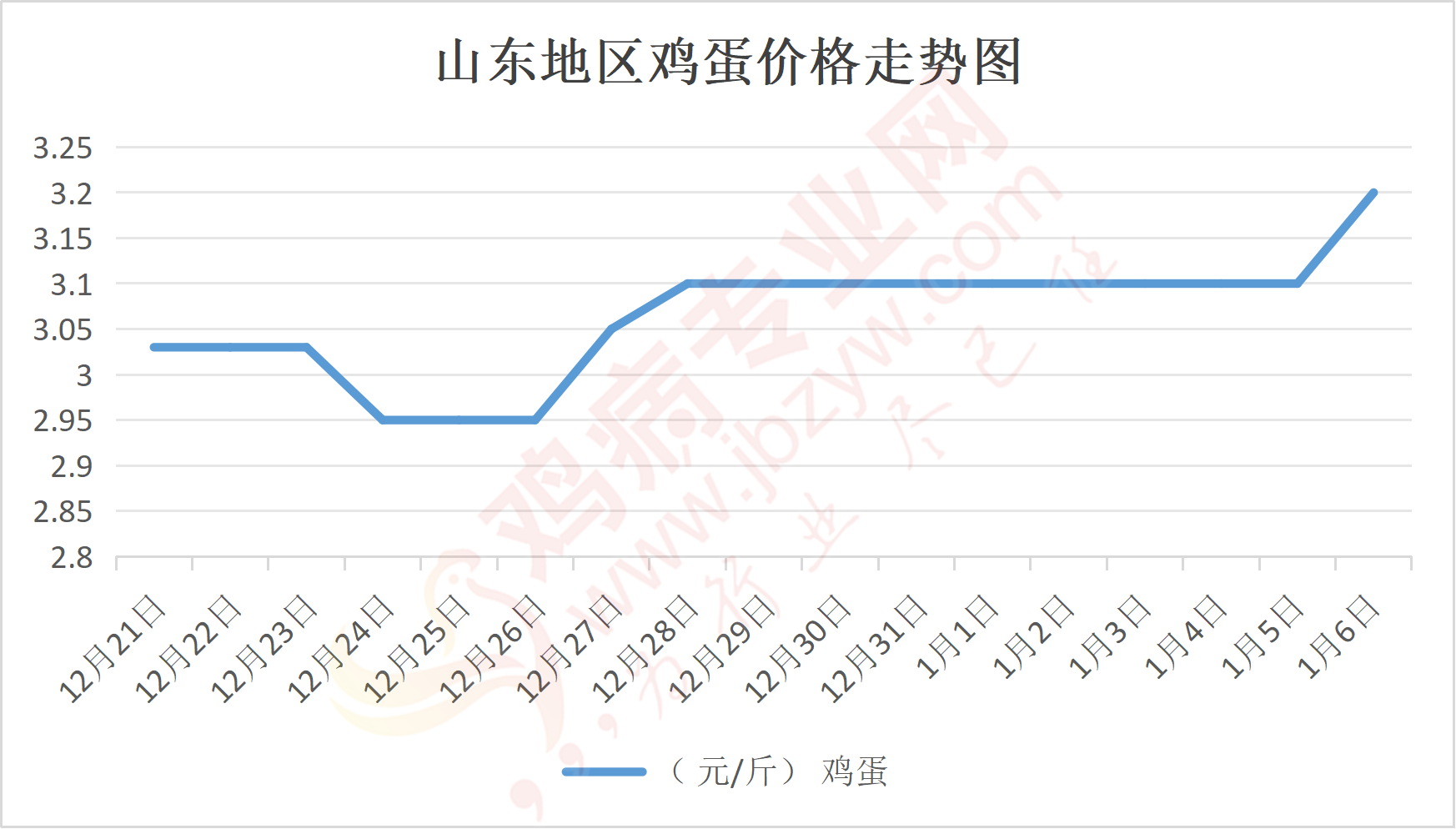 鸡病专业网消息:1月6日,山东地区莱阳鸡蛋3.25元/斤,涨;青岛鸡蛋3.25元/斤,涨;诸城鸡蛋3.25元/斤,涨;安丘鸡蛋3.15元/斤,涨;昌乐鸡蛋3.15元/斤,涨;寿光鸡蛋3.15元/斤,涨;昌邑鸡蛋3.15元/斤,涨;高密鸡蛋3.25元/斤,涨;青州鸡蛋3.15元/斤,涨;临朐鸡蛋3.15元/斤,涨;莱州鸡蛋3.25元/斤,涨;威海鸡蛋3.25元/斤,涨;临沭鸡蛋3.2元/斤,涨;沂水鸡蛋3.2元/斤,涨;沂南鸡蛋3.2元/斤,涨;莒南鸡蛋3.2元/斤,涨;兰陵县鸡蛋3.2元/斤,涨;日照鸡蛋3.2元/斤,涨;莒县鸡蛋3.2元/斤,涨;日照辛萁商贸鸡蛋3.2元/斤,涨;泗水鸡蛋价格93元/斤,涨;济宁、汶上鸡蛋价格93元/斤,涨;梁山、东平红蛋价格93元/斤,涨;枣庄滕州地区鸡蛋混码主流到户95元/30斤,涨;泰安地区新泰鸡蛋价格93元/斤,涨;菏泽地区曹县主流到户93元/斤,涨;成武鸡蛋价格93元/斤,涨;单县到户93元/斤,涨;聊城莘县93元/斤,涨;莱芜鸡蛋140元/45斤,涨;济南鸡蛋140元/45斤,涨;德州鸡蛋124元/40斤,涨;滨州鸡蛋124元/30斤,涨。