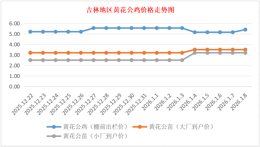 1月8日吉林黄花公鸡、鸡苗价格行情
