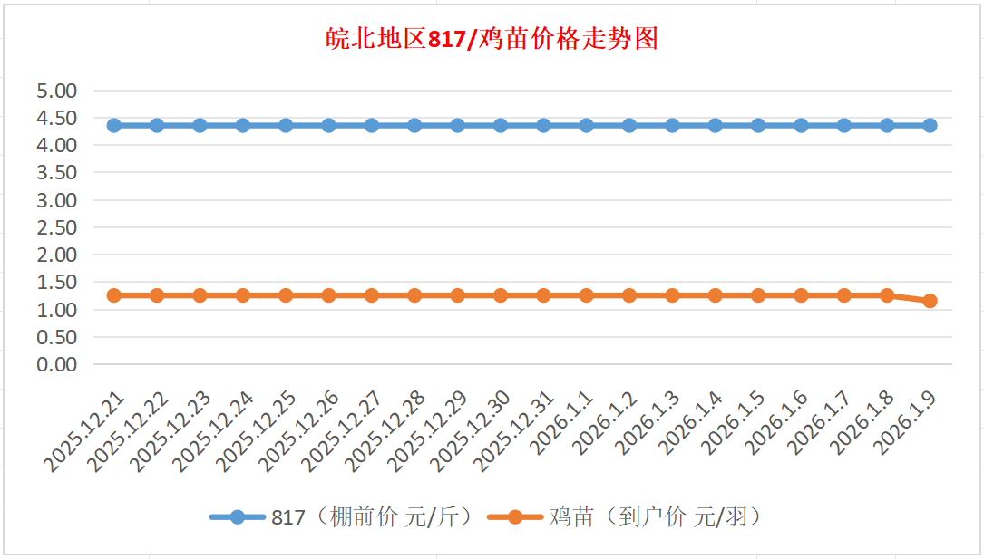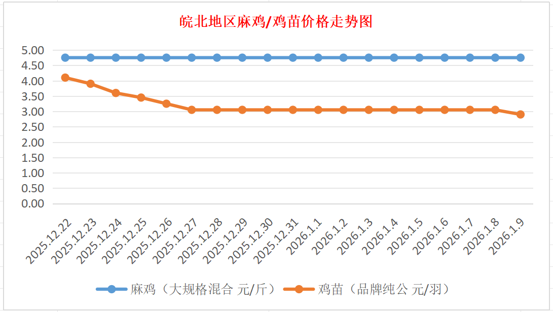 鸡病专业网独家信息:2026年1月9日皖北地区817-麻鸡行情最新走势