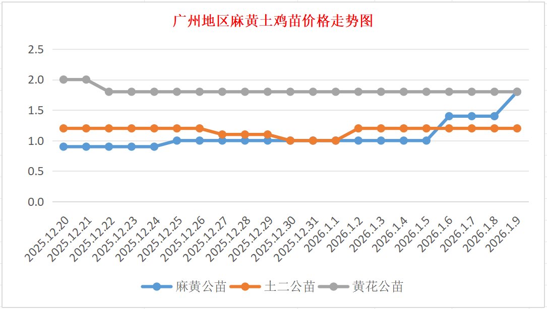1月9日广州地区麻、黄、土鸡苗价格行情