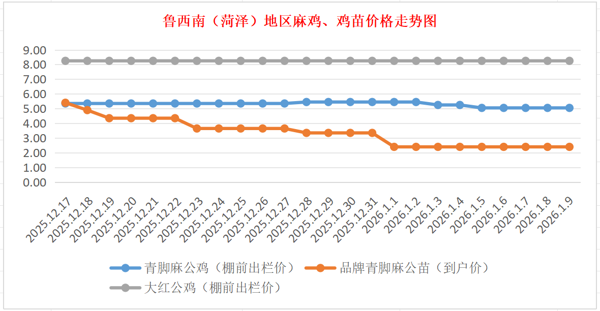 1月9日鲁西南(菏泽)地区麻鸡、鸡苗价格行情