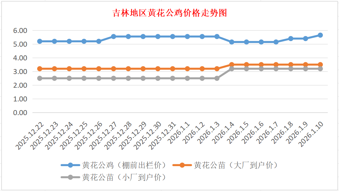 1月10日吉林黄花公鸡、鸡苗价格行情