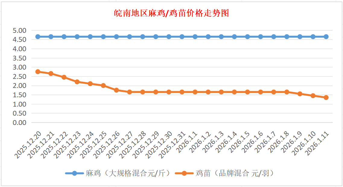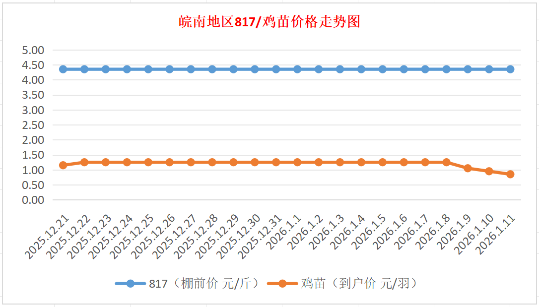 鸡病专业网独家信息:2026年1月11日皖南地区817-麻鸡行情最新走势