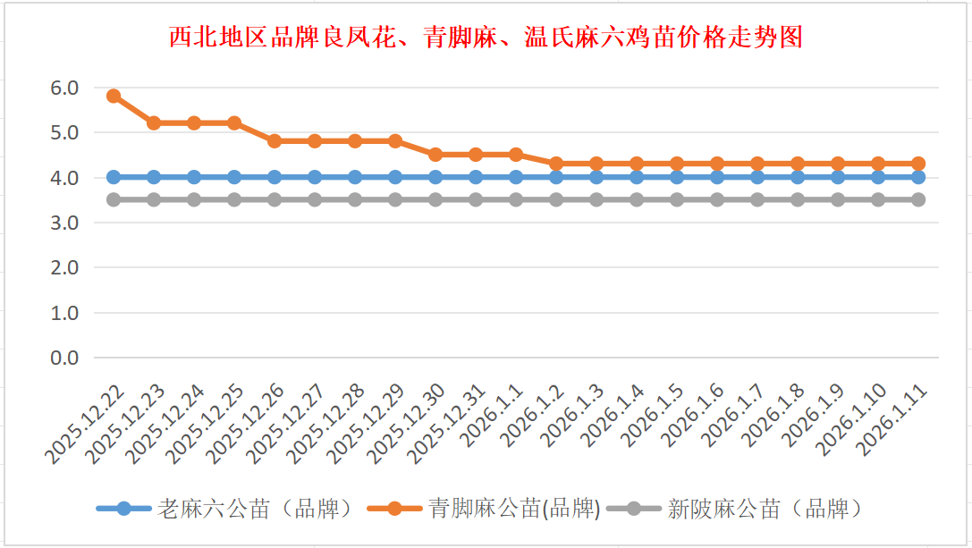 西北地区麻鸡苗价格走势图(来源:鸡病专业网)