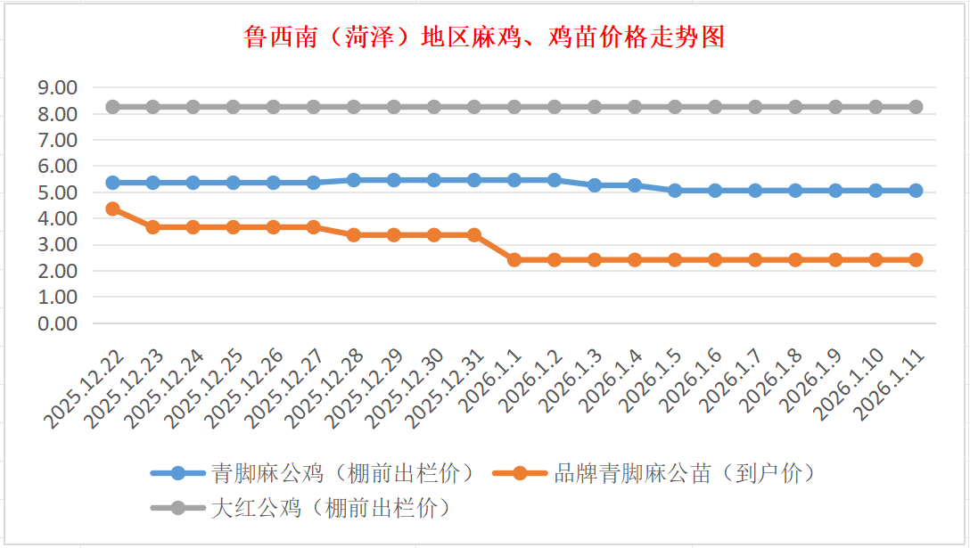 1月11日鲁西南(菏泽)地区麻鸡、鸡苗价格行情