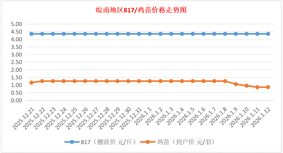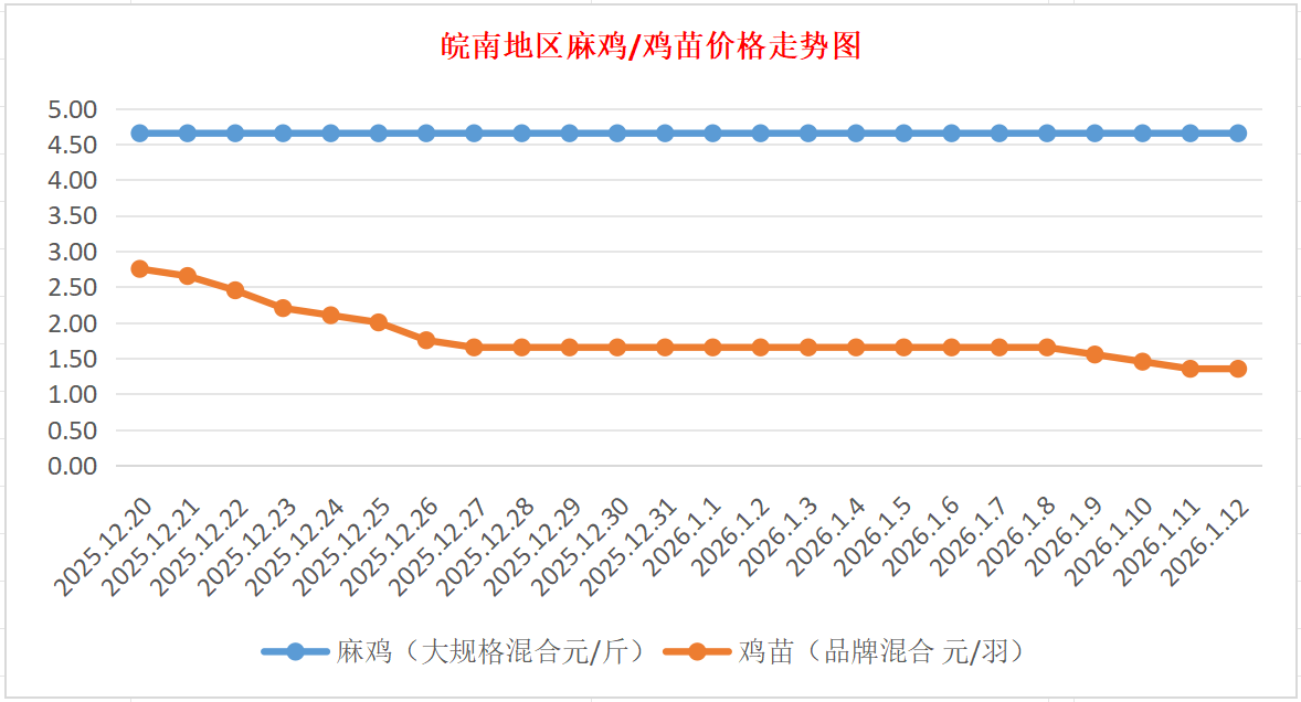 鸡病专业网独家信息:2026年1月12日皖南地区817-麻鸡行情最新走势
