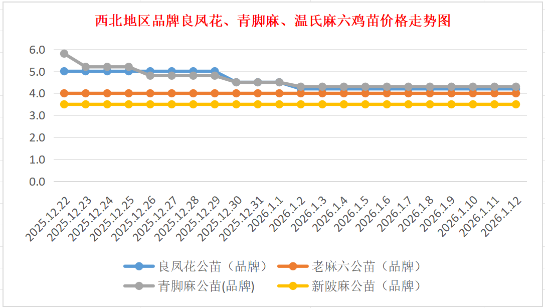 西北地区麻鸡苗价格走势图(来源:鸡病专业网)
