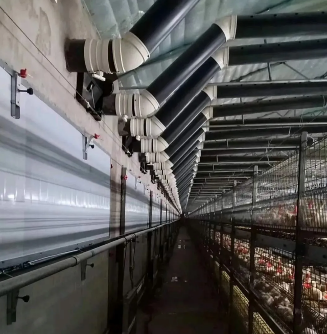 六、外界的冷空气进入鸡舍后要高于鸡只的高度,在接触到鸡只前需要有足够的风速和舍内的暖空气进行混合