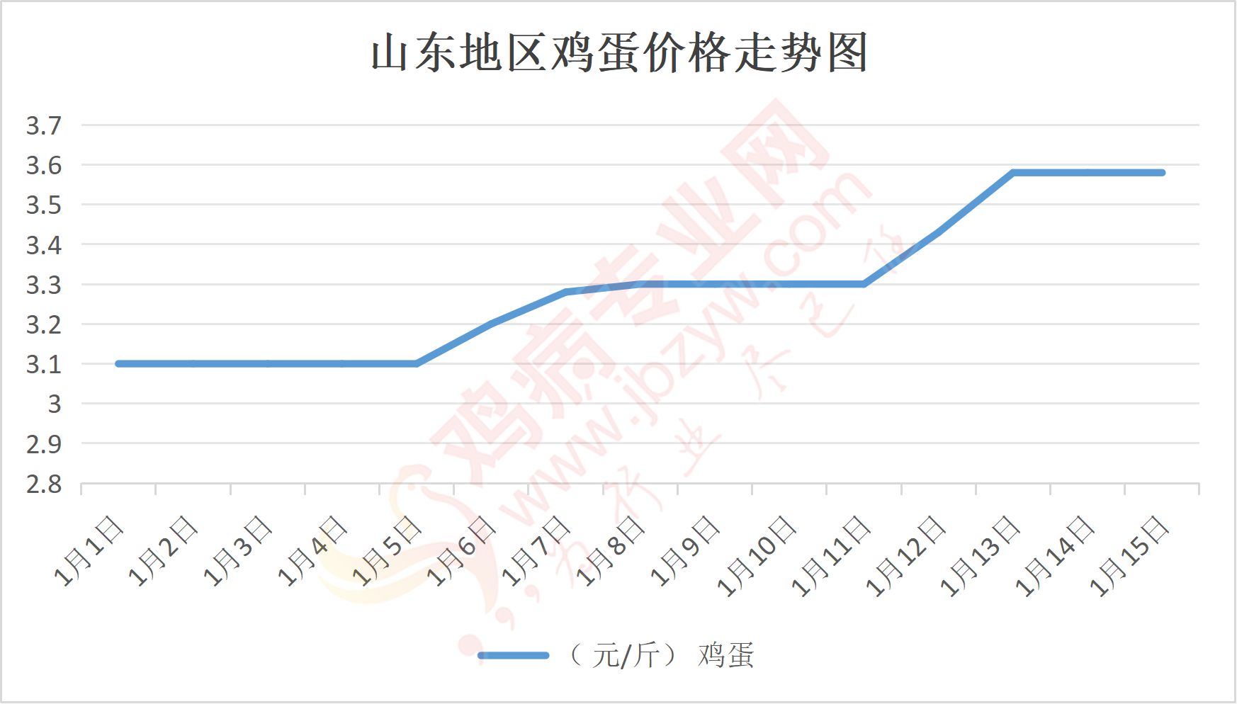 鸡病专业网消息:1月15日,山东地区莱阳鸡蛋3.6元/斤,稳;青岛鸡蛋3.6元/斤,稳;诸城鸡蛋3.6元/斤,稳;安丘鸡蛋3.55元/斤,稳;昌乐鸡蛋3.55元/斤,稳;寿光鸡蛋3.55元/斤,稳;昌邑鸡蛋3.55元/斤,稳;高密鸡蛋3.6元/斤,稳;青州鸡蛋3.55元/斤,稳;临朐鸡蛋3.55元/斤,稳;莱州鸡蛋3.6元/斤,稳;威海鸡蛋3.6元/斤,稳;临沭鸡蛋3.55元/斤,稳;沂水鸡蛋3.55元/斤,稳;沂南鸡蛋3.55元/斤,稳;莒南鸡蛋3.55元/斤,稳;兰陵县鸡蛋3.55元/斤,稳;日照鸡蛋3.55元/斤,稳;莒县鸡蛋3.55元/斤,稳;日照辛萁商贸鸡蛋3.55元/斤,稳;泗水鸡蛋价格105元/30斤,稳;济宁、汶上鸡蛋价格105元/30斤,稳;梁山、东平红蛋价格105元/30斤,稳;枣庄滕州地区鸡蛋混码主流到户106元/30斤,稳;泰安地区新泰鸡蛋价格105元/30斤,稳;菏泽地区曹县主流到户105元/30斤,稳;成武鸡蛋价格105元/30斤,稳;单县到户105元/30斤,稳;聊城莘县105元/30斤,稳;莱芜鸡蛋158元/45斤,稳;济南鸡蛋158元/45斤,稳;德州鸡蛋140元/40斤,稳;滨州鸡蛋140元/40斤,稳。