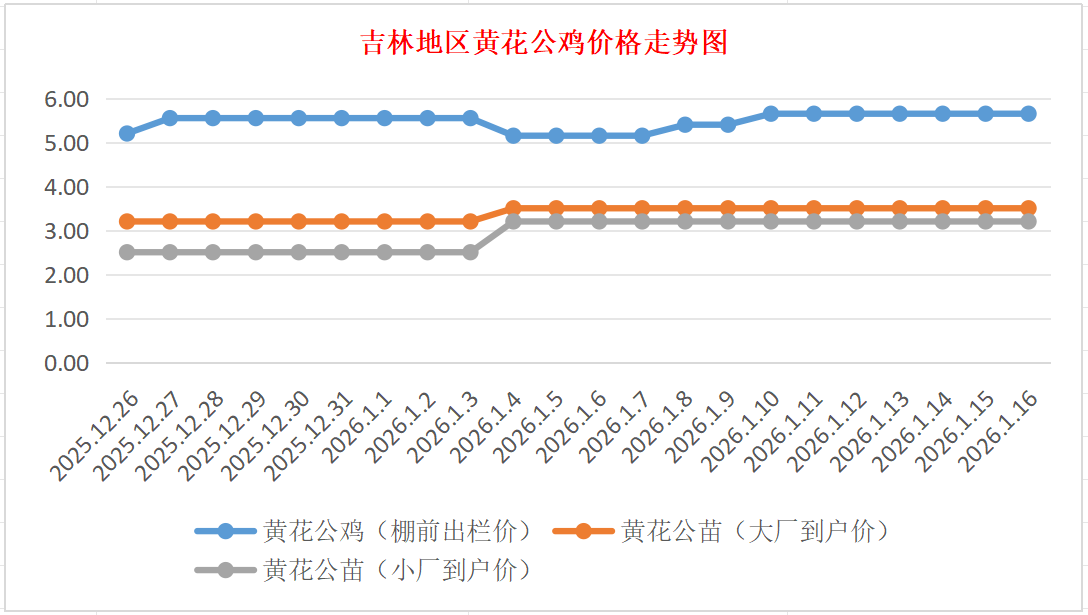 1月16日吉林黄花公鸡、鸡苗价格行情