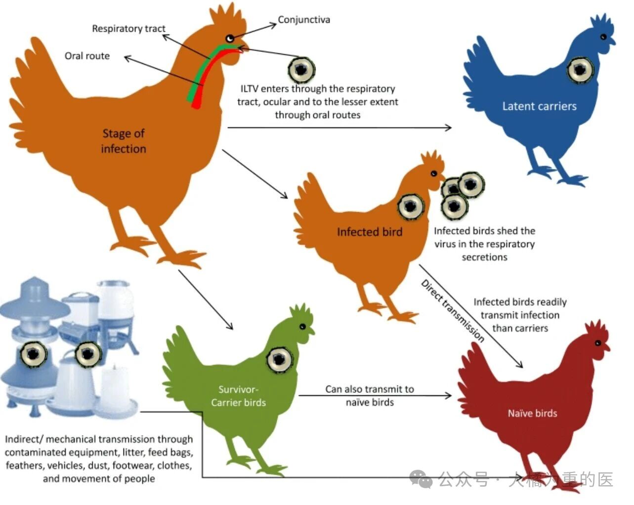 潜伏/复发康复鸡可终身带毒,遇免疫抑制、换羽、转群等应激可重新排毒,成为“沉默传染源”
