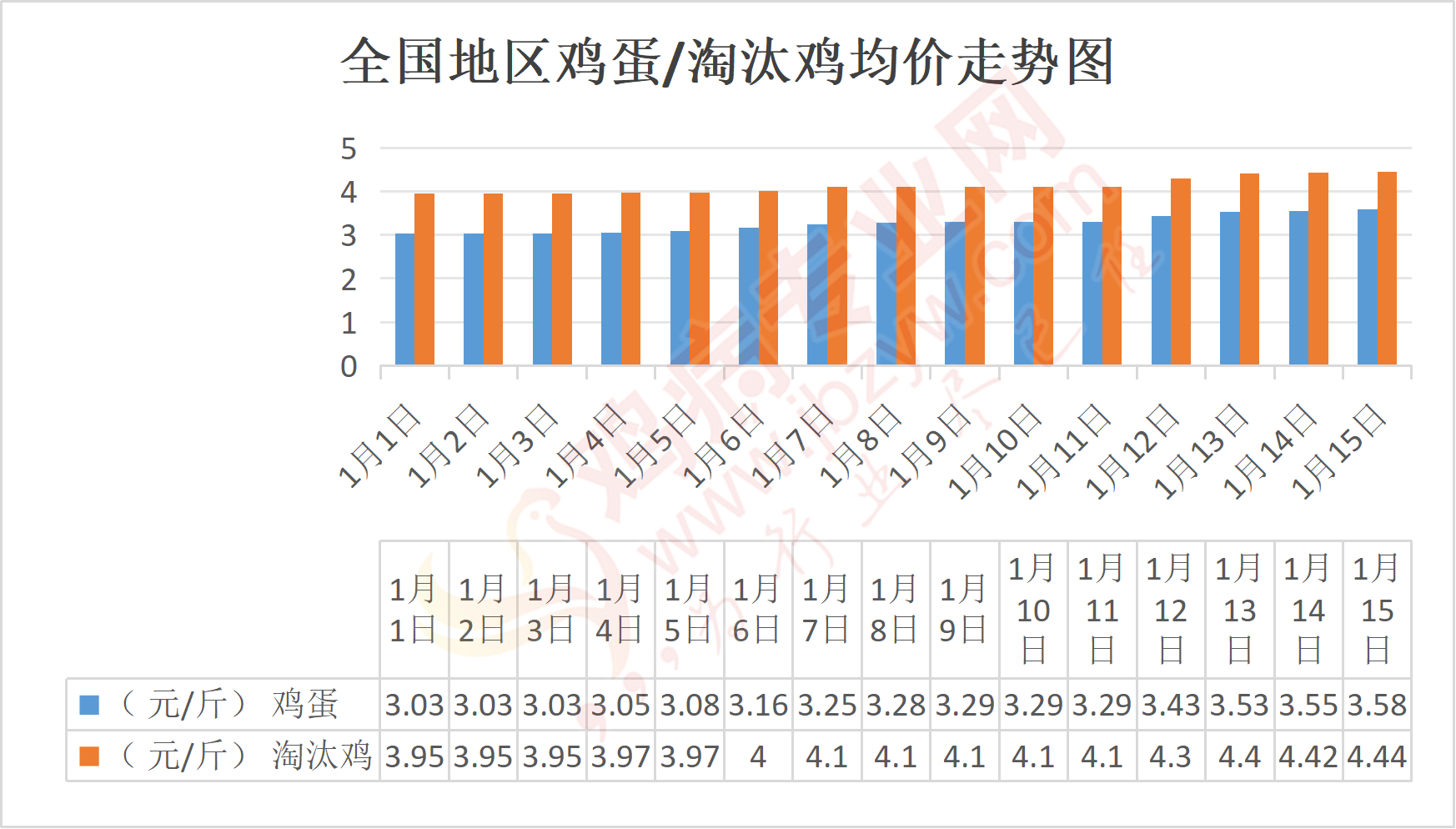 河北地区:衡水粉蛋3.31元/斤,与昨日相比持平,淘汰鸡4.2-4.4元/斤;
