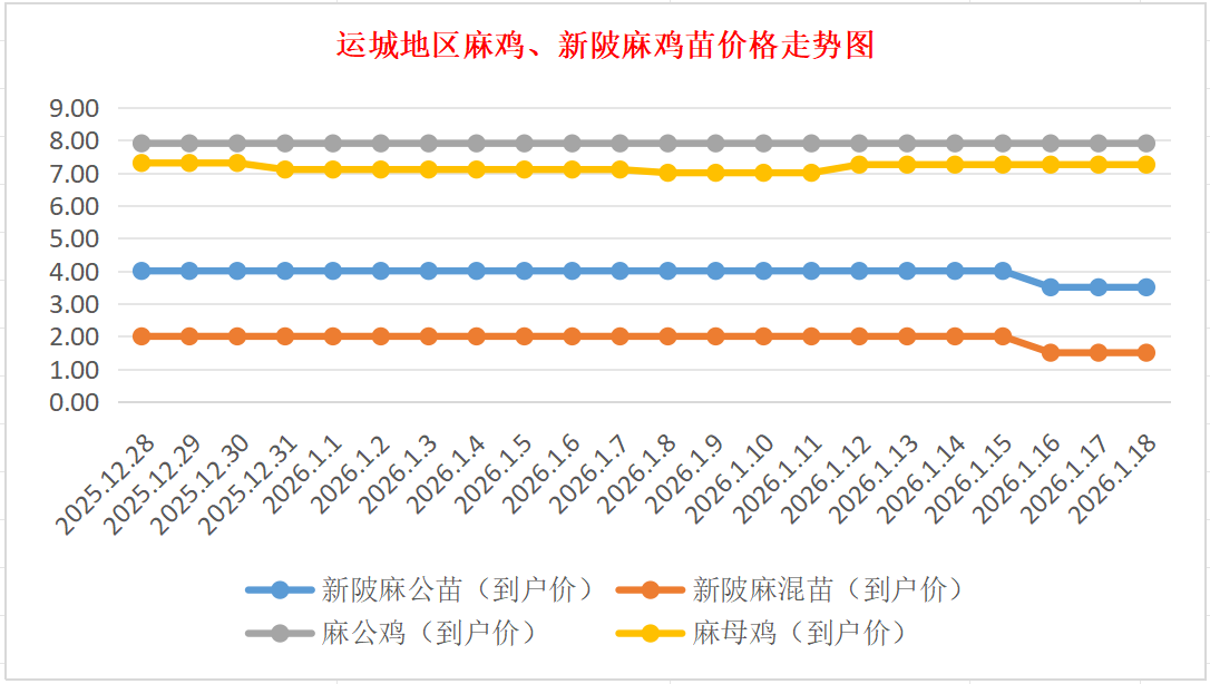 运城地区麻鸡、新陂麻鸡苗价格走势图(来源:鸡病专业网)