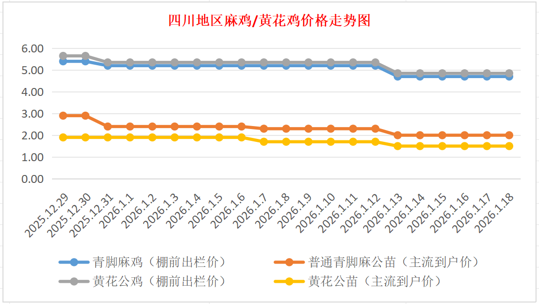 普通青脚麻公苗:价格稳定,主流到户价1.80-2.20元/羽,稳。