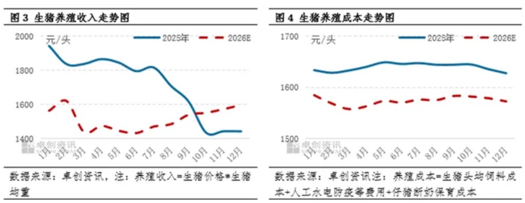 2、2026年养殖收入与养殖成本或均低位运行