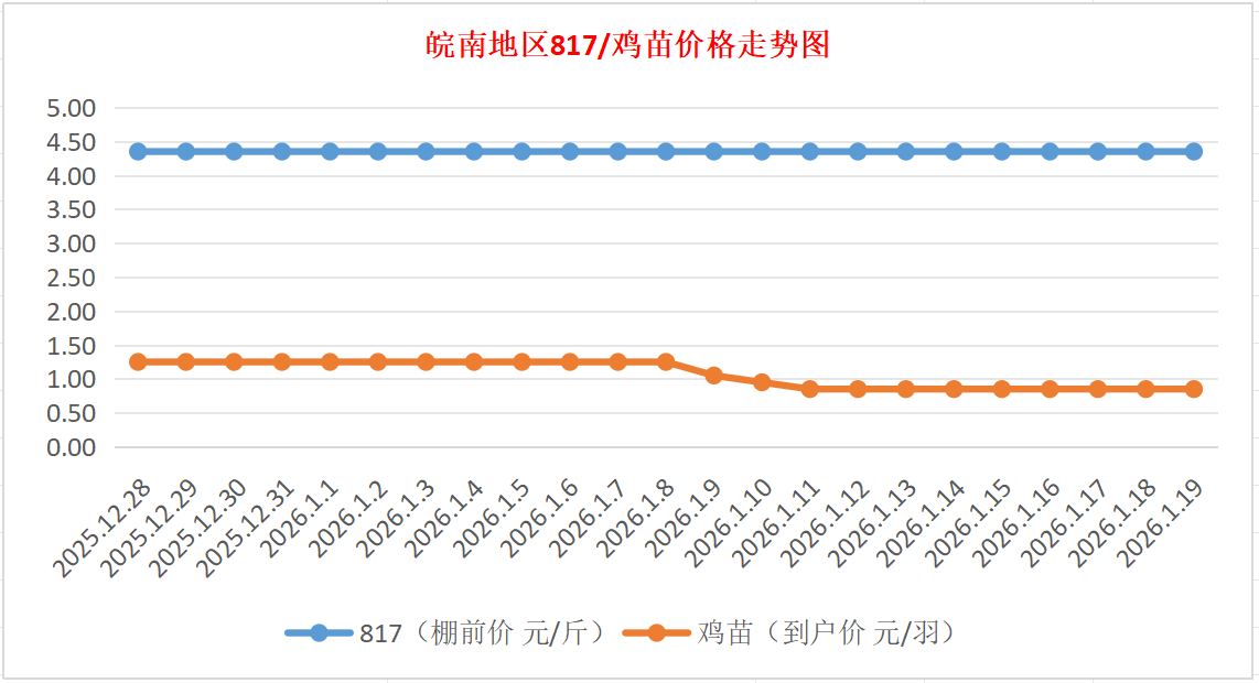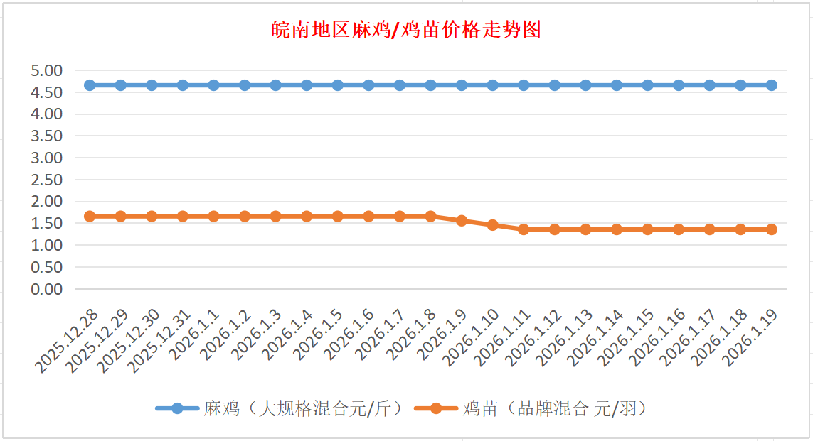 鸡病专业网独家信息:2026年1月19日皖南地区817-麻鸡行情最新走势