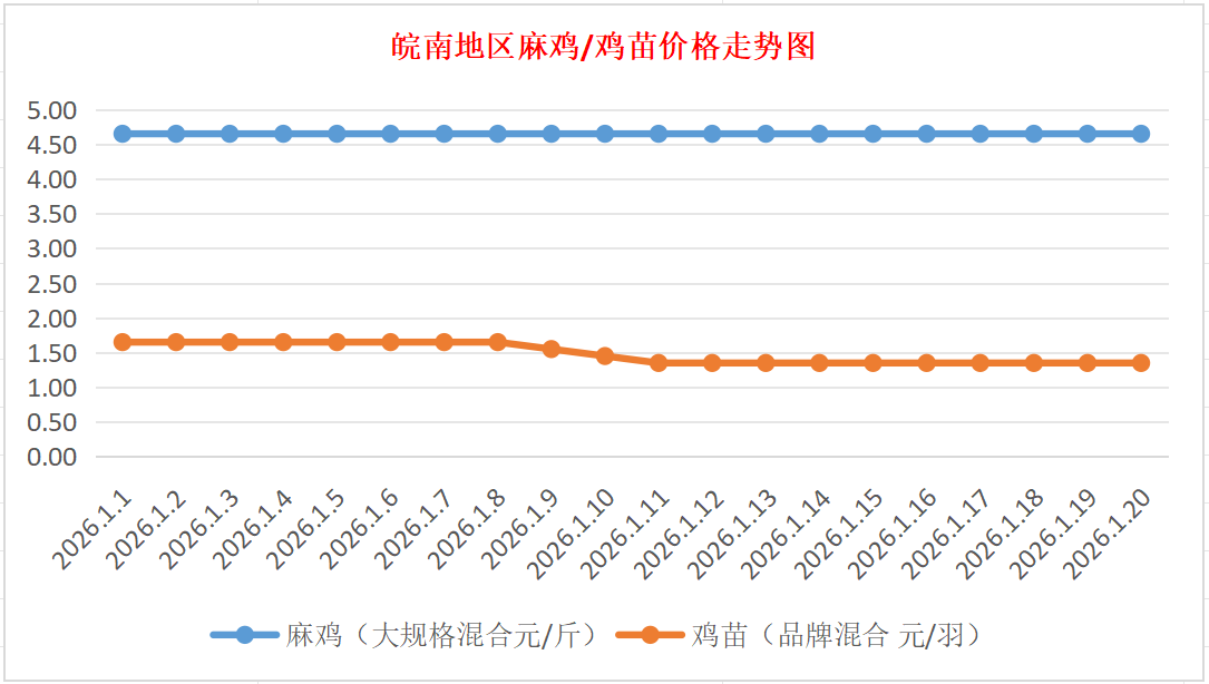 鸡病专业网独家信息:2026年1月20日皖南地区817-麻鸡行情最新走势