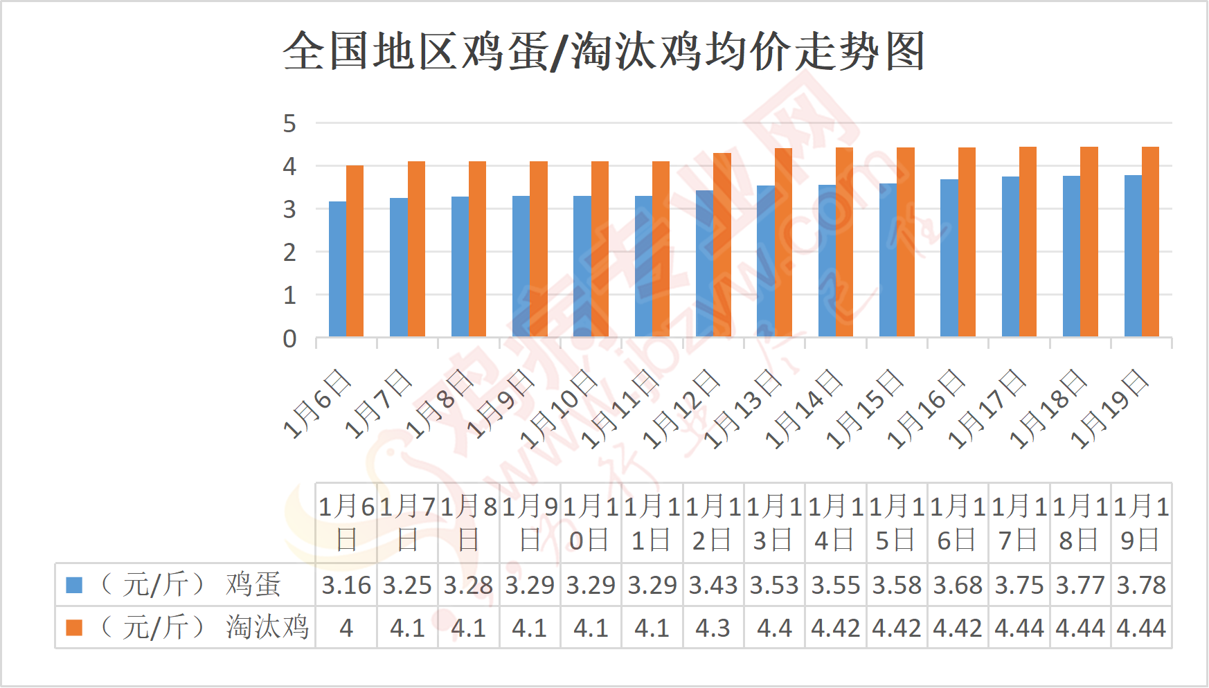 1月19日我国部分地区鸡蛋、淘汰鸡价格汇总